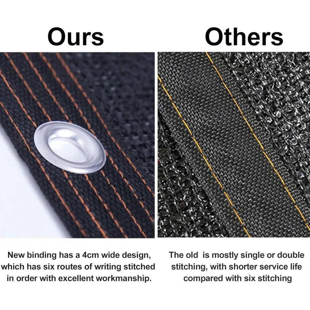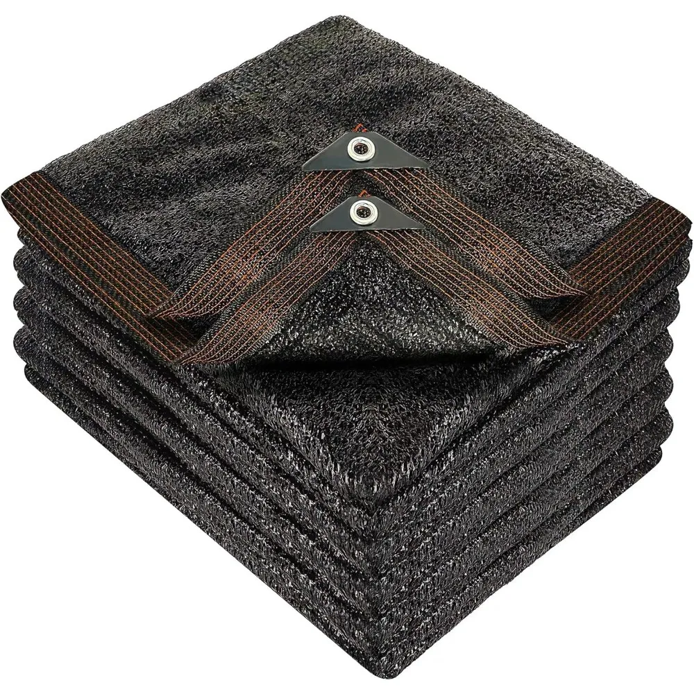 This product features a shade cloth that provides a 90% shade rate, effectively blocking out most of the sunlight while still allowing air to circulate, creating a cool and comfortable environment for both people and plants. The cloth permits 10% of sunlight to pass through, offering just the right amount of shade. Made from high-density polyethylene, the shade cloth is both lightweight and durable. This material ensures optimal airflow and stretch, making it ideal for use in greenhouses and for protecting a variety of plants, flowers, and fruits. The shade cloth boasts an excellent design with lock-stitch knitting technology that prevents unraveling and ensures longevity. It comes with taped edges and reinforced corners for added durability and strength. Setting up the shade cloth is a breeze, thanks to the grommets placed every 40 inches along the reinforced edges. This allows for easy and secure hanging without the risk of tearing. The fabric is breathable, helping to maintain fresh air and allowing hot air to escape while also permitting water droplets to pass through. It can be easily cleaned with a garden hose. Please note that due to the stretchy nature of the fabric, the dimensions may vary slightly, but the overall area of the cloth remains consistent.
